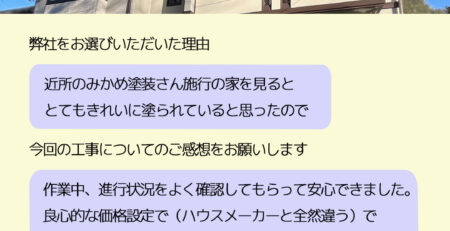 今回は、船橋市八木が谷で塗り替え工事を行ったI様からのアンケートでした。ご協力、ありがとうございました!