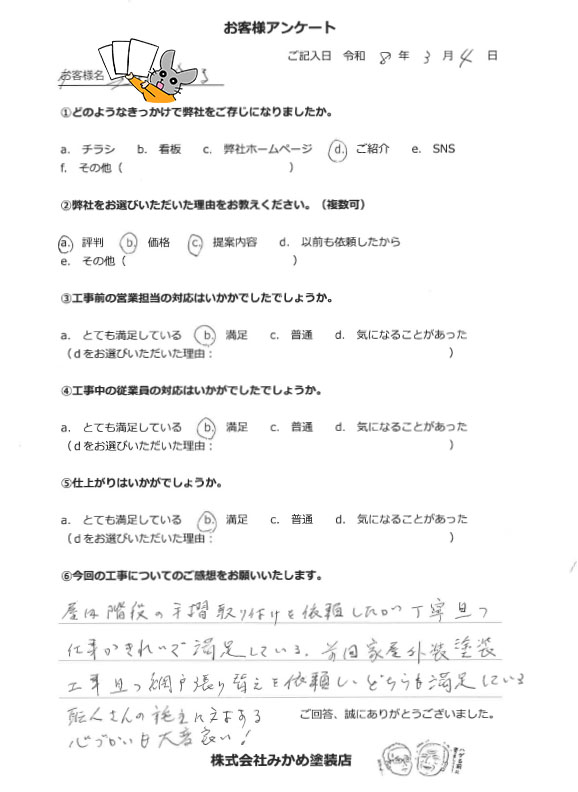 2025年に屋根と外壁の塗り替え工事を行った、船橋市習志野台のO様からのアンケートです。手すりの取り付け工事を行ったので、アンケートのご協力をお願いしました。ちょうどお隣で縄文土器の発掘をしているという、かなりレアな体験もできました!