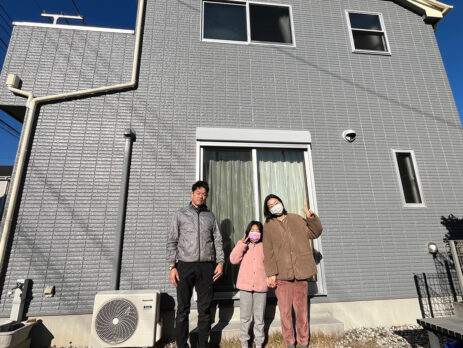 船橋市二和東で、外壁と屋根の塗装工事を行いました。 工事前もそこまで傷んでいたわけではなかったのですが、外壁にコケが付着するようになってきて少し気になる、とのことでした。 外壁に試し塗りをして・・ 日本塗料工業会、LN-55で仕上げました!使用材料は、日本ペイントのファインパーフェクトトップです。 K様親子にも喜んでもらい、「10年後にまたお願いしたいです!」と言ってもらえました。ペンキ屋冥利に尽きます。ありがとうございました! よく見ると、山田さんはいつもより緊張しているように見えます・・。実際は、とっても笑顔が素敵なナイスガイなんですよ! そんなわけで! 外壁と屋根の塗替え工事は、地元・船橋市で50年の株式会社みかめ塗装店へ、ぜひぜひご依頼ください!お見積りは無料です! (※2024年12月の工事です。)